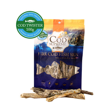 Alps Natural's Pure Treats Ocean Fish Cod Twister is made with 100% all natural cod fish skin. They are sourced from and produced in Iceland, which is known for its unpolluted pristine nature.